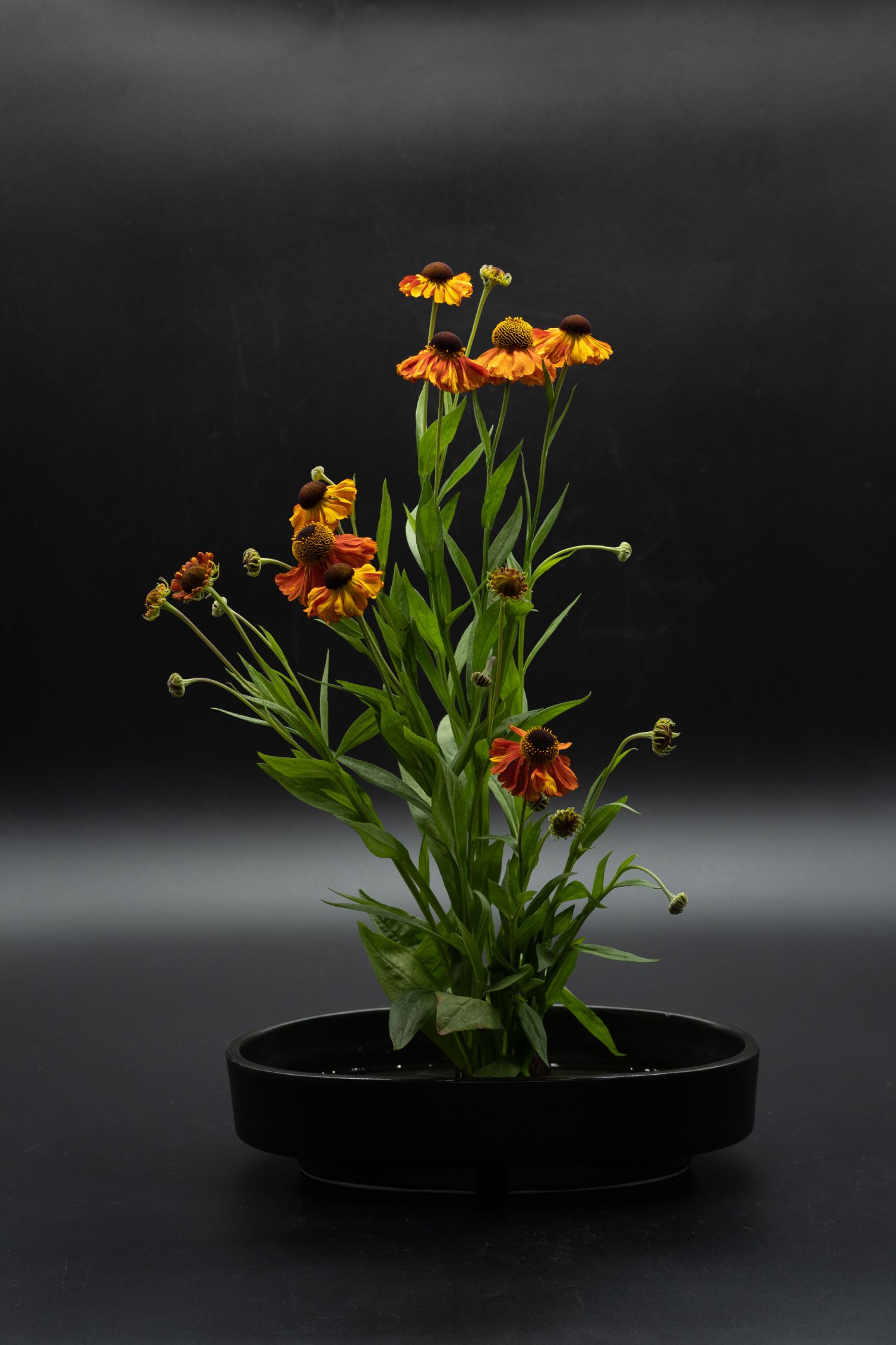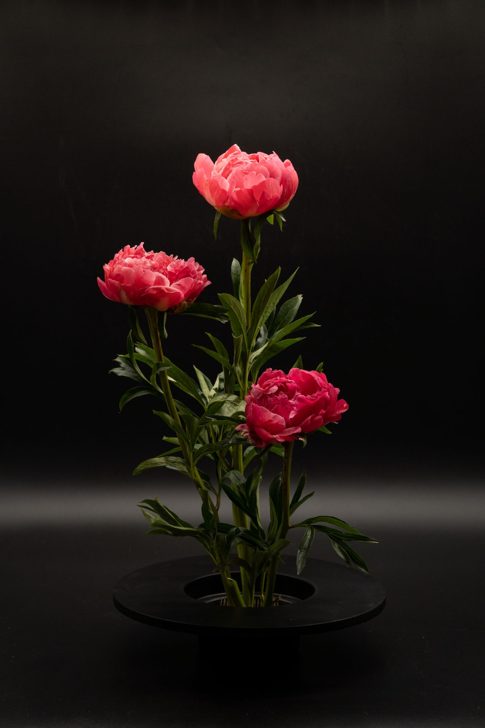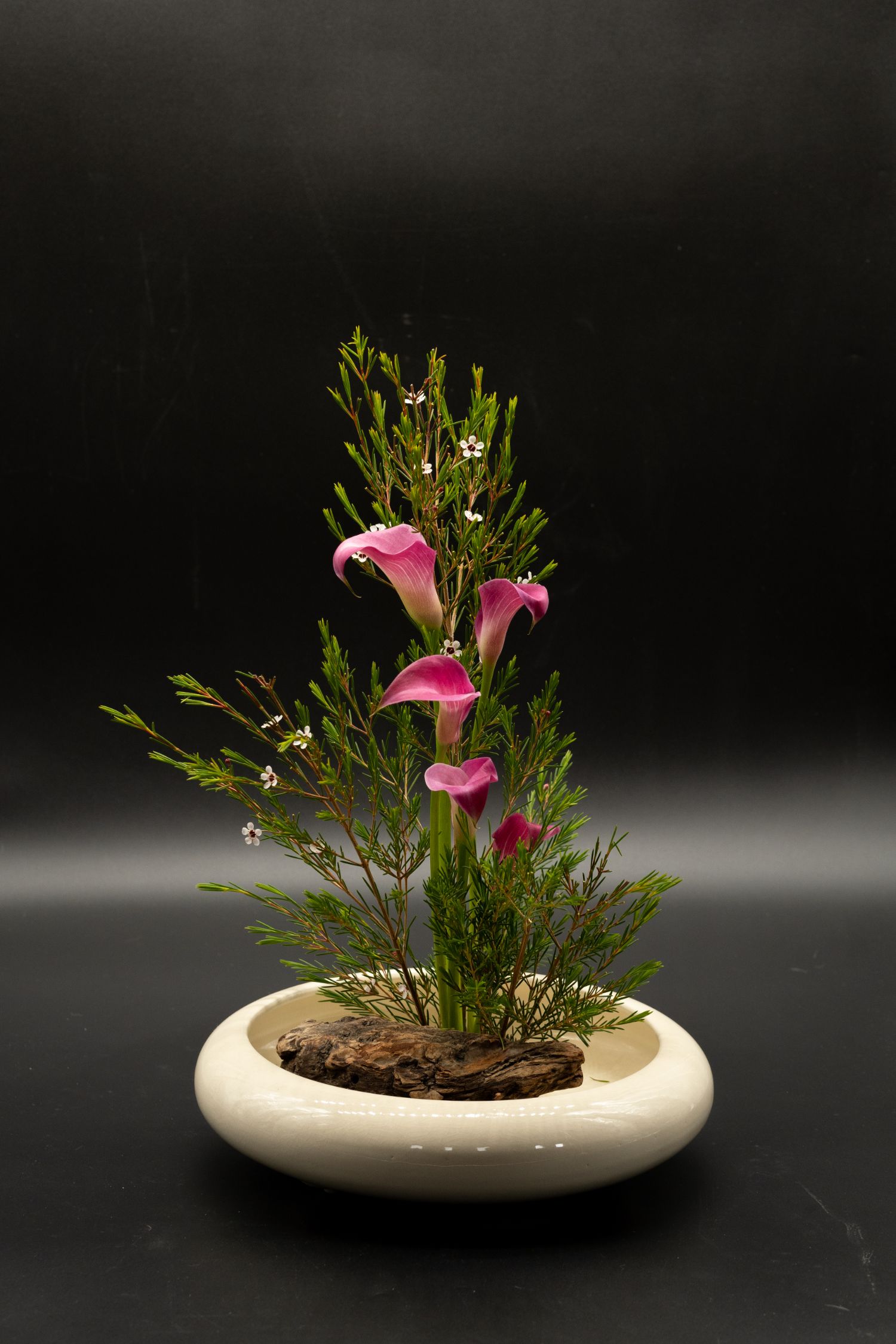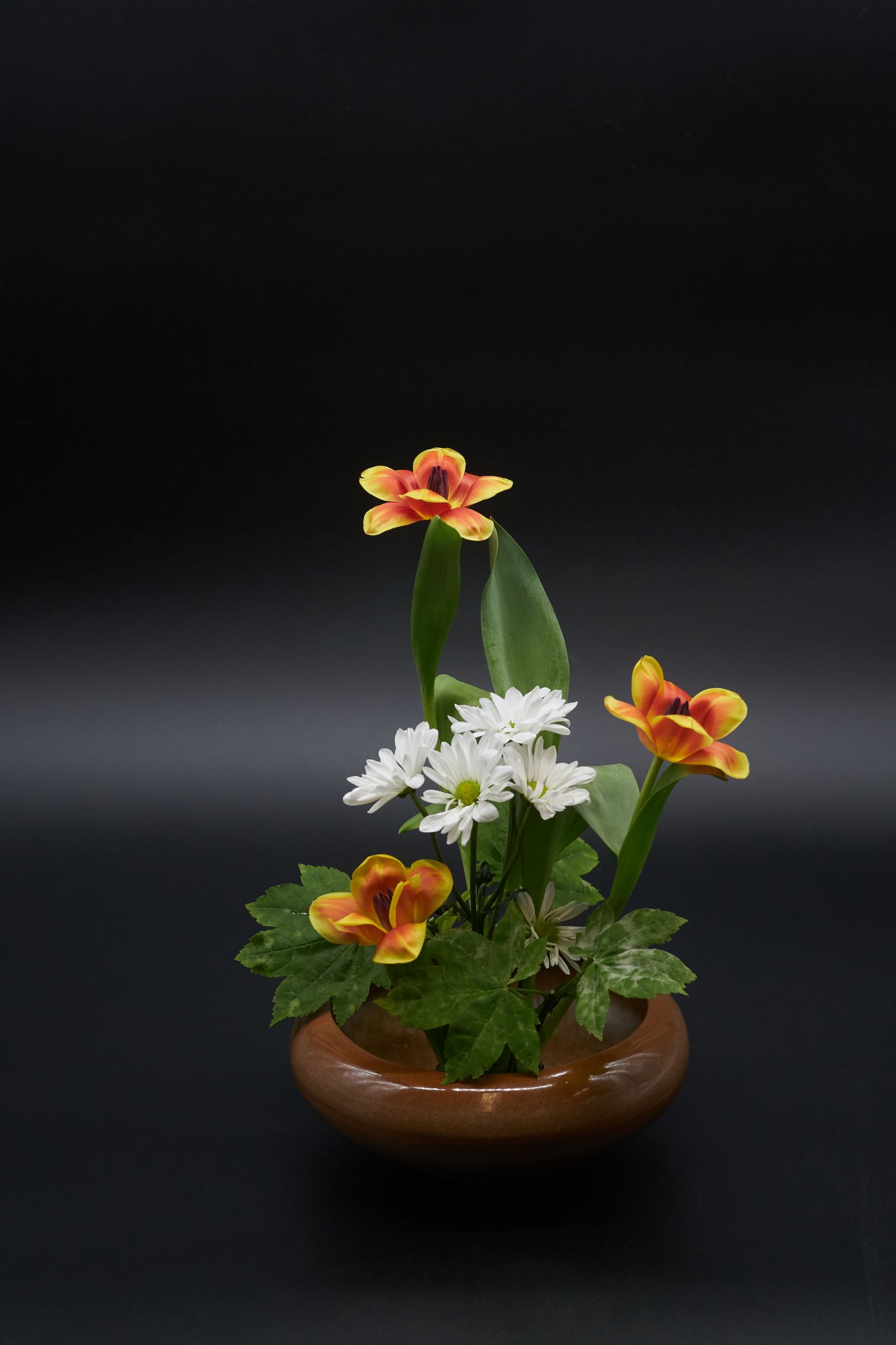 The Senke School follows the Japanese flower arrangement principles laid down by the legendary tea master Sen-no-Rikyu in mid-1500s. Although originally based in Kyoto, during the Tenmei period (1781-1789), a Senke School iemoto [headmaster] by the name of Shotei brought the school to Akita (northern Japan). Couple of iemoto generations later, Kane Shoji (flower name: Shosetsusai Shoji Osen) travelled from Akita to Seattle in 1921 and moved the Senke School to the United States in 1922.